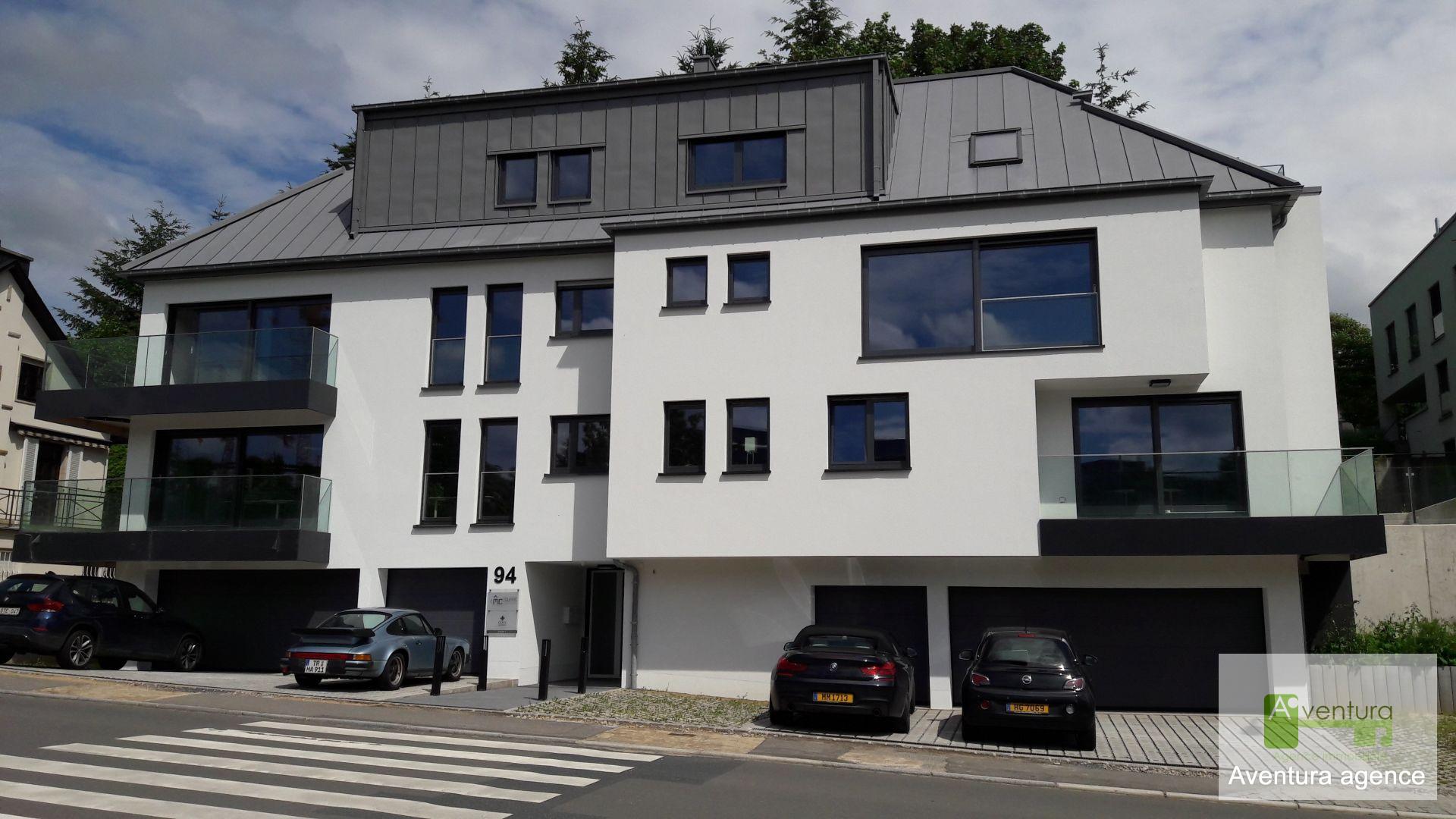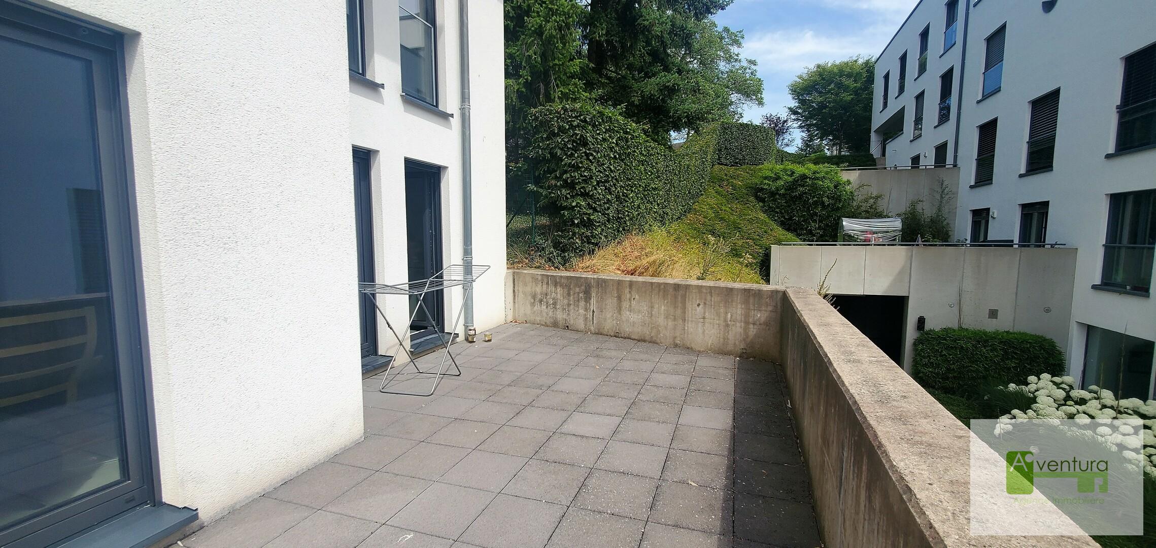 Très belle localisation pour cette petite résidence récente au Kirchberg, rue du Kiem ( face au bâtiment KPMG) avec un bel appartement- terrasse lumineux au premier étage. Prestations luxueuses, cuisine et sanitaires haut de gamme, chauffage au sol, climatisation. Cet appartement comprend: - Une cuisine avec ilot central, entièrement équipée, ouverte sur le séjour. - Un séjour avec de grandes baies vitrées vue dégagée et sortie sur un balcon de 6 m² et sur une très grande terrasse ensoleillée de 19 m². - 2 chambres à coucher équipée de dressing. - 1 salle de bain avec grande douche italienne, vasque et WC. - 1 WC séparé - 1 emplacement dans la buanderie - 1 cave privative - 1 emplacement voiture intérieur Bien en excellent état.