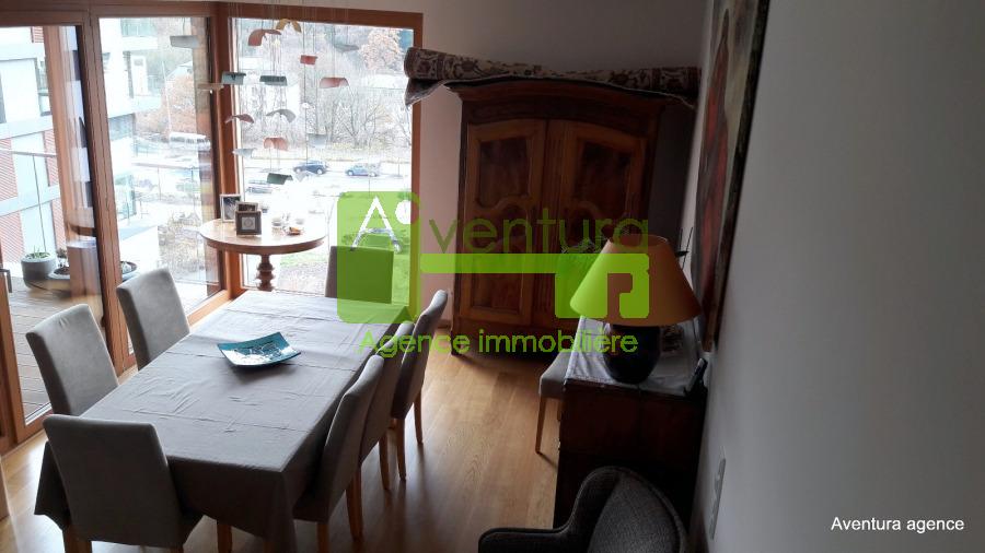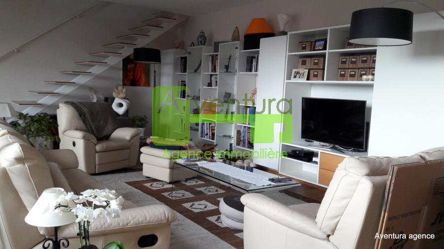 Au dernier étage d`une résidence récente, à proximité du Centre Hospitalier du Kirchberg, un magnifique duplex baigné de lumière. Au premier niveau, la cuisine hautement équipée, le séjour et la salle à manger s`articulent autour d`une belle terrasse couverte façon patio. Les escaliers aériens mènent à l`étage où l`espace nuit accueille la suite parentale avec son dressing et sa salle de bain ( baignoire et #43; douche à l`italienne) ainsi que 3 autres chambres et une seconde salle de bain. Une grande cave et deux emplacements intérieurs complètent le bien. Vue dégagée, parquets en chêne, stores extérieurs électriques...