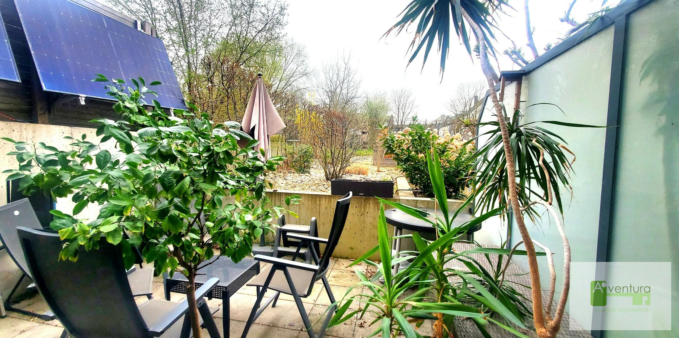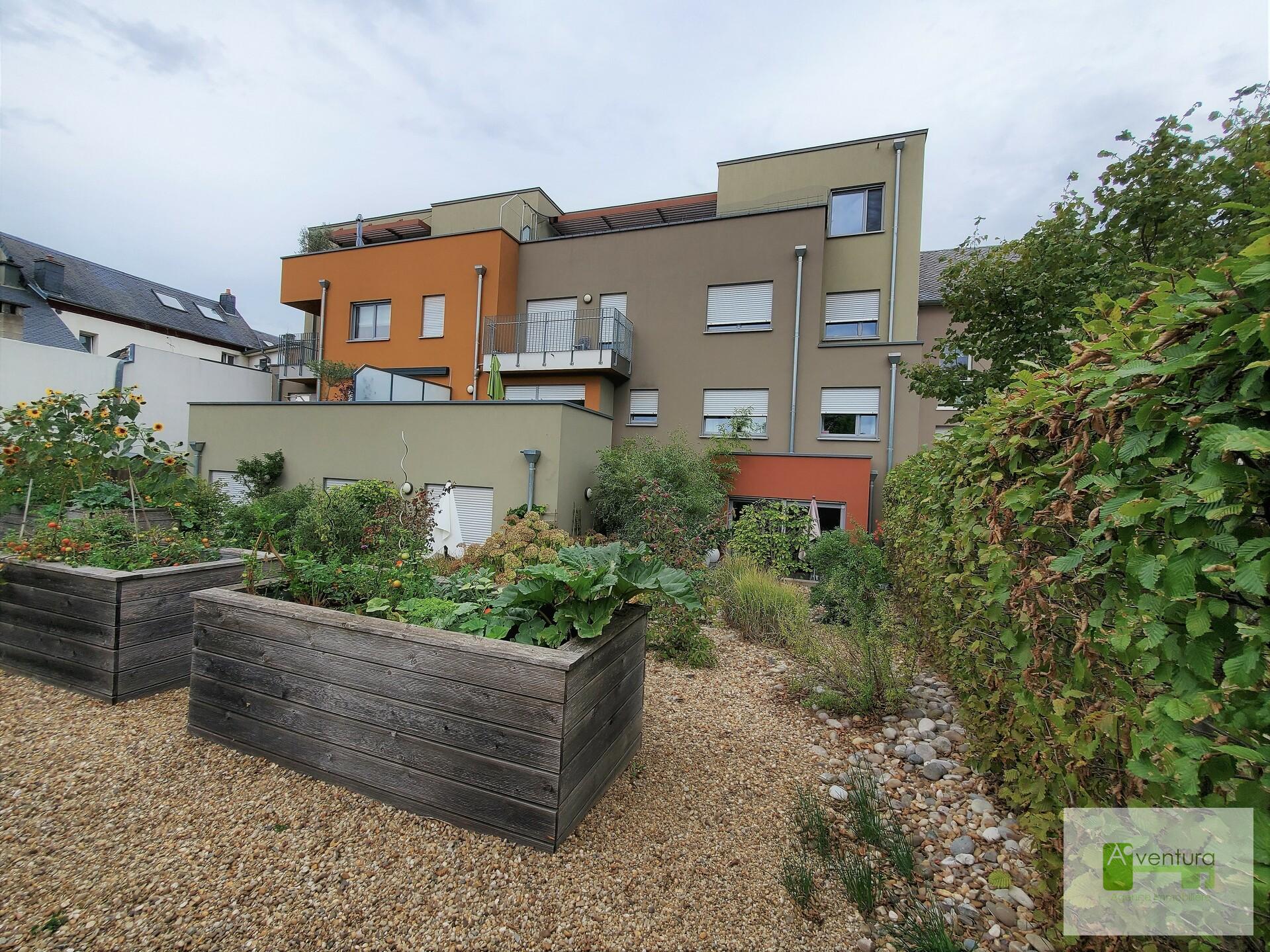 Bel appartement avec une terrasse de 15 m² orientée sud, sans vis à vis, de laquelle on accède à un très beau jardin commun de 600 m² avec barbecue , pergola, potagers individuels. L'appartement se compose: - d'un séjour lumineux de 31 m² avec une cuisine équipée ouverte et l'accès à la terrasse. - d'une vaste chambre avec grand dressing et ouverte sur la salle de douche. - d'un WC séparé. - d'un emplacement de parking intérieur avec borne de recharge pour véhicule électrique. - d'une cave. Le bien est loué non meublé, à l'exception d'un lave-linge, sèche-linge, et luminaires. Bail de 1 an minimum.Les chiens ne sont pas admis. Pour tout renseignement: contact@aventura-agence.lu